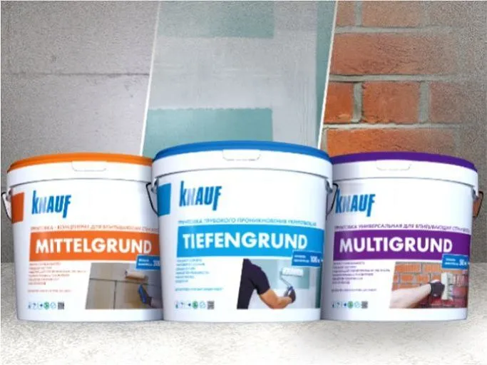 Завод в Беларуси производит наиболее популярные наименования грунтовок КНАУФ: КНАУФ-Тифенгрунд, КНАУФ-Мультигрунд, КНАУФ-Миттельгрунд.
