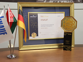 Среда 02.09.2020Компания КНАУФ в Беларуси получила награду на конкурсе «На лучшее достижение в строительной отрасли Республики Беларусь за 2019 год»