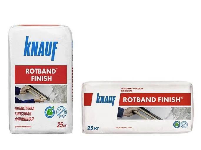 КНАУФ-РОТБАНД ФИНИШ применяется внутри помещений для поверхностного шпаклевания КНАУФ-листов (ГСП) и КНАУФ-суперлистов (ГВЛ), пазогребневых плит (КНАУФ-гипсоплит), гипсовых и цементных штукатурок, бетонных поверхностей слоем 0,2 до 5 мм. После шпаклевания поверхность готова под финишную отделку.