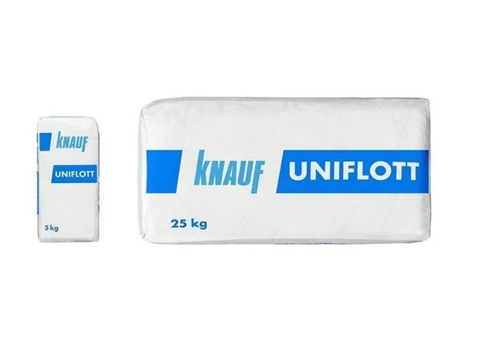 - Шпаклевка гипсовая высокопрочная КНАУФ-Унифлот по своим технологическим и техническим показателям превосходит все аналогичные материалы. Особенно эффективна при заделке поперечных стыков гипсокартонных КНАУФ-листов;
