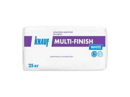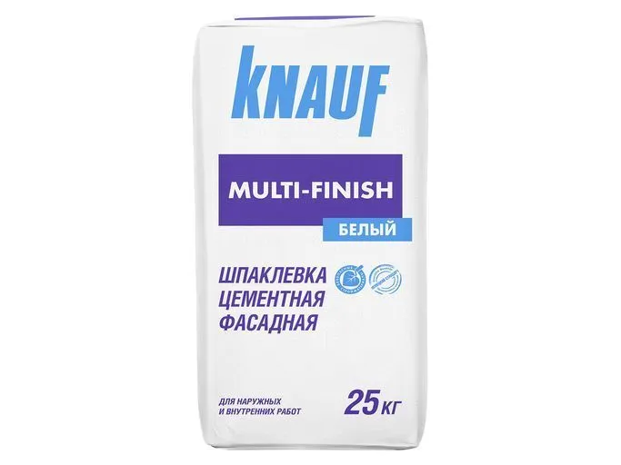 Шпаклёвка КНАУФ Мульти-финиш предназначена для выравнивания поверхностей бетона и цементных штукатурок, например, КНАУФ-Грюнбанд, КНАУФ-Унтерпутц и КНАУФ-Зокельпутц на фасадах зданий и в помещениях с повышенной влажностью, для ремонта, заделки трещин, заполнения отверстий.