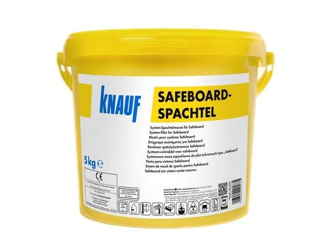 Шпаклевка КНАУФ-Сейфборд Шпахтель – сухая гипсовая смесь с добавлением специальных компонентов, обеспечивающих защиту от рентгеновского излучения. Предназначена для заделки вручную стыков рентгенозащитных плит КНАУФ-Сейфборд.